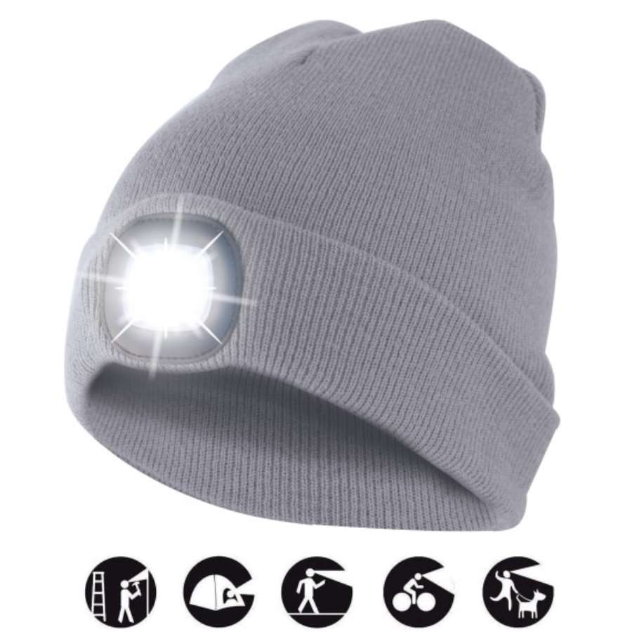 GORRO CON LUZ LED RECARGABLE GRIS CLARO